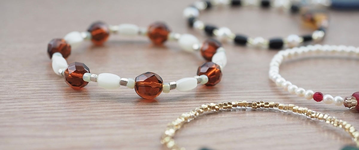 内周 : 16 cm 素材 : ヴィンテージビーズ/ビーズ/ゴム キャラメルカラーのハート型ヴィンテージビーズをメインに、ホワイトシルバービーズを組み合わせたブレスレット。 チェリーモーヴとグレープトーンのヴィンテージビーズが、さりげなく可愛らしさと温かみを添えています。 上品さと甘さのバランスがとれた、やわらかな印象のアクセサリーです。 ブレスレットは透明ゴムを使用しており、内周16cmになっています。 【コンディション】 ヴィンテージビーズには、小さな傷や汚れが見られる場合がございます。あらかじめご了承ください。 *撮影時には可能な限り実際の色味を再現するよう努めておりますが、完璧ではない場合がございますことをご了承ください。