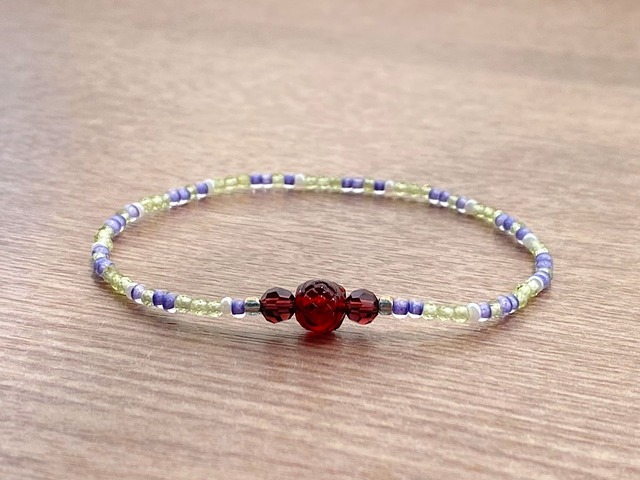 ダークレッド & ペリドット ブレスレット