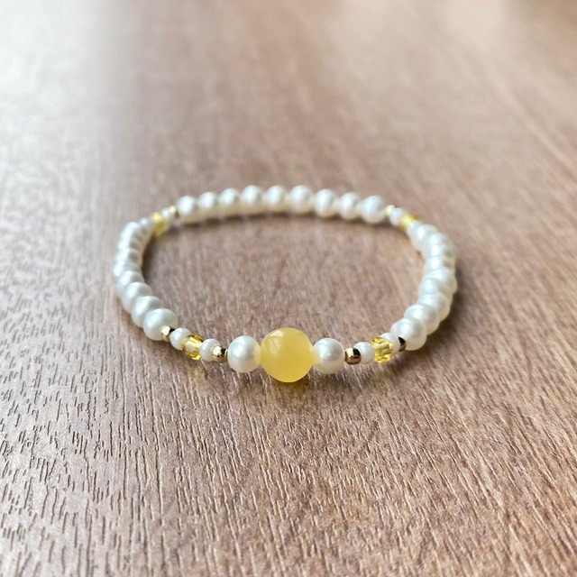 アラゴナイトと淡水パールを合わせたブレスレットです。