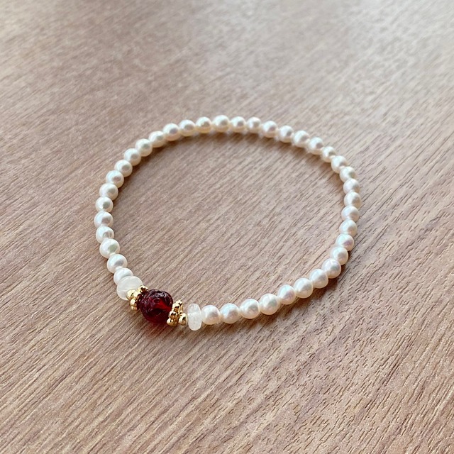 レッドローズ & パール スノーホワイトクリスタル ブレスレット