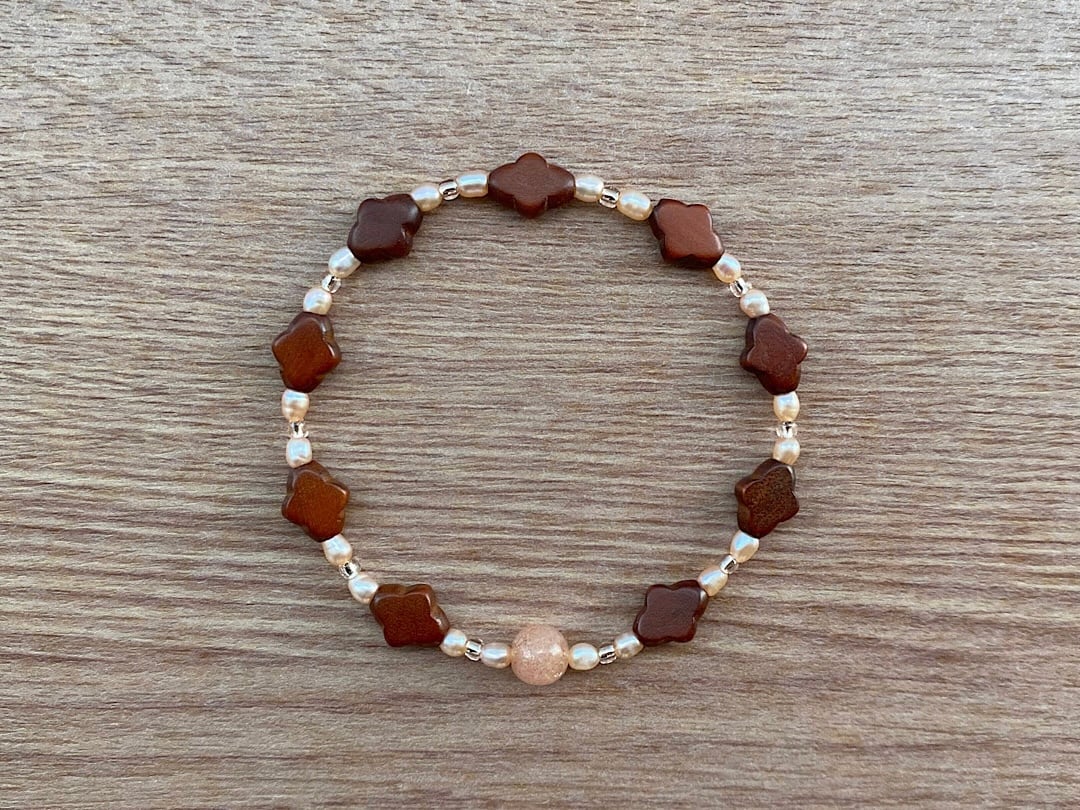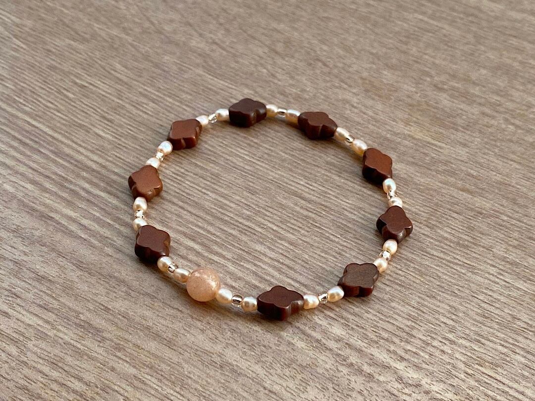 素材 : 天然石/ヴィンテージウッド/淡水パール/ビーズ/ゴム