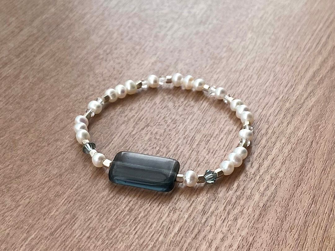 素材 : ヴィンテージビーズ/淡水パール/クリスタルビーズ/ゴム