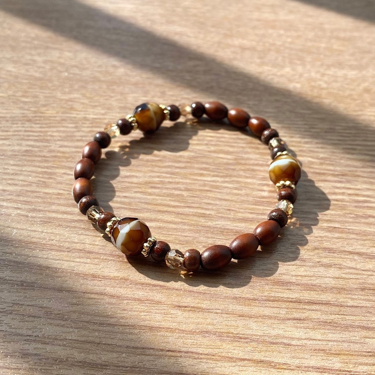 ブラウンマーブル & ウッド ブレスレット