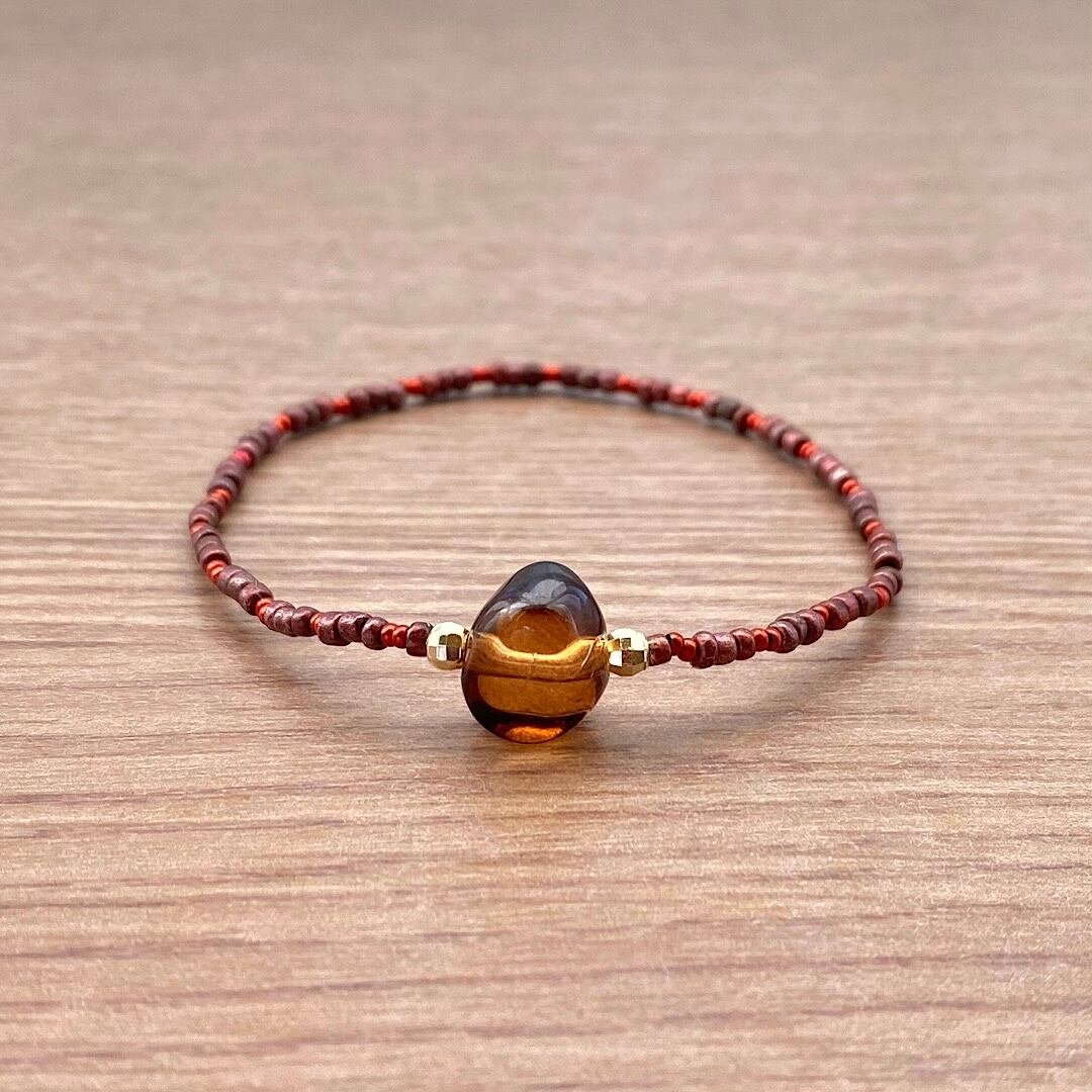 くすんだローズのヴィンテージビーズに深みのあるレッドを散りばめ、手元にそっと温かさを添えるブレスレットです。