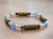 オリーブゴールド & ブルー パール ブレスレット