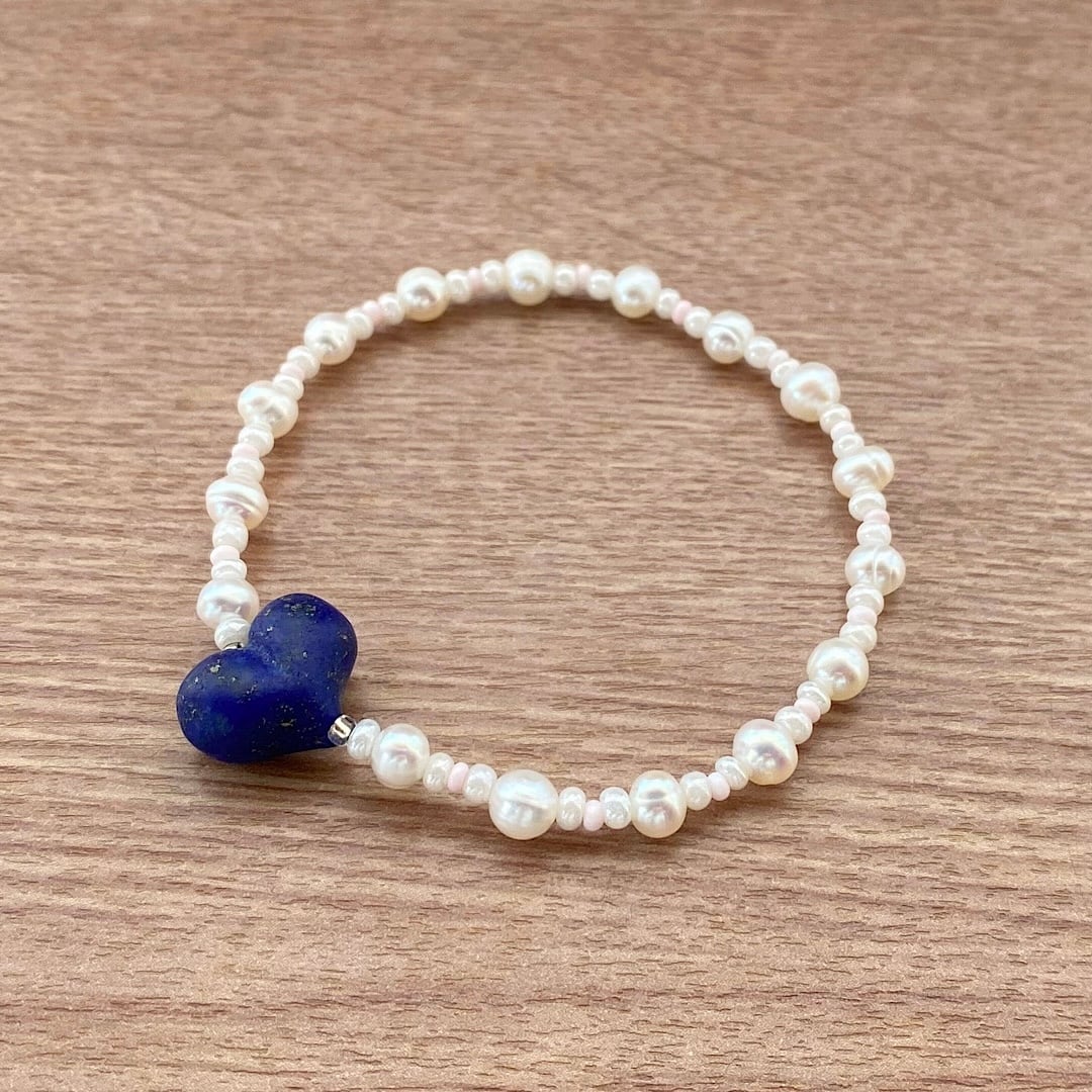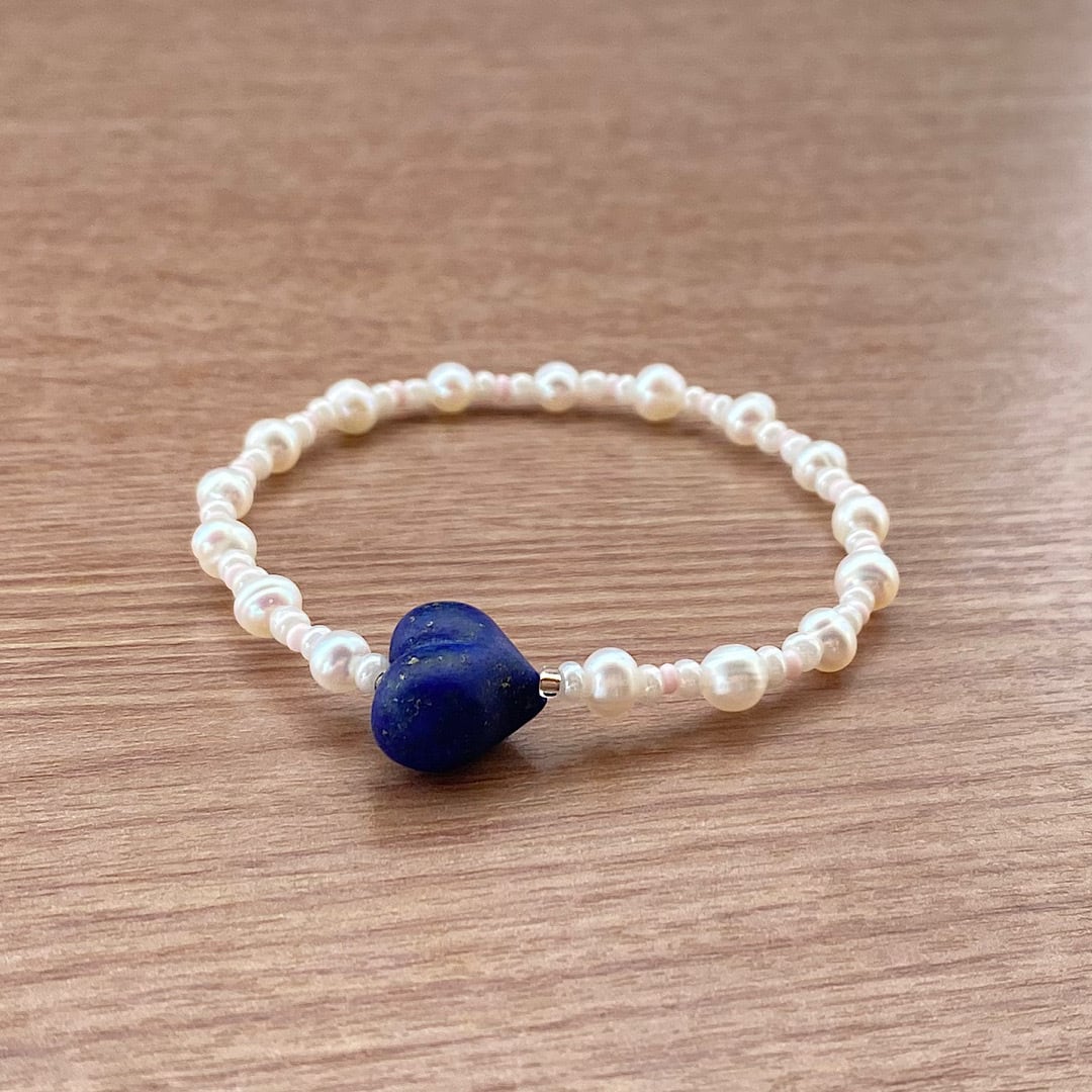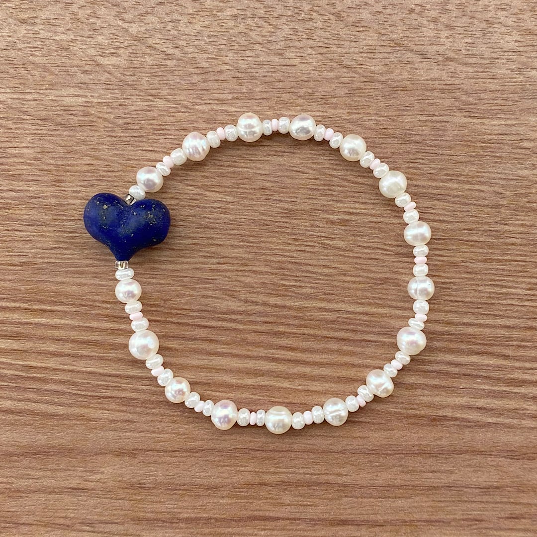 ラピスラズリ ハート & パール ブレスレット
