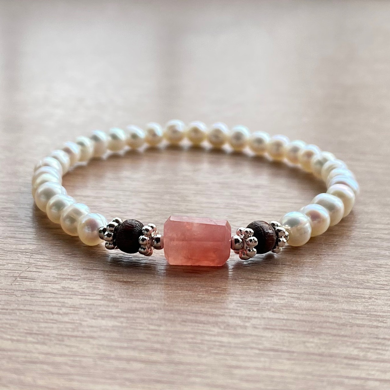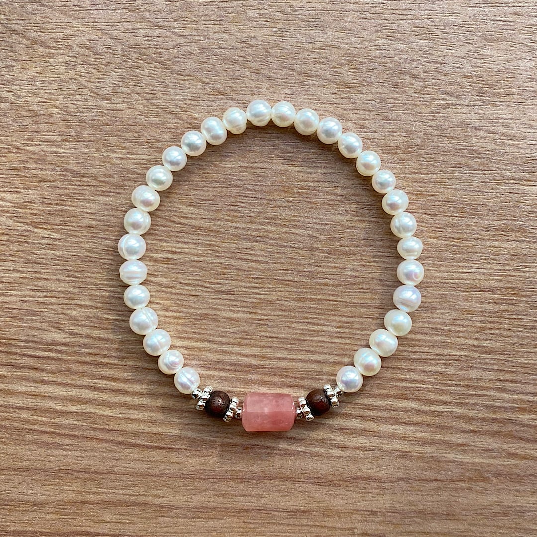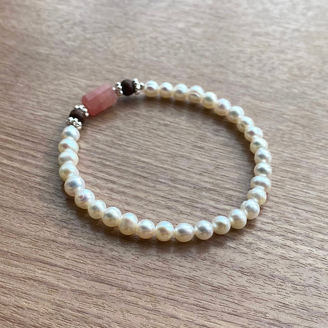 ピンク グァバクォーツ & パール ブレスレット