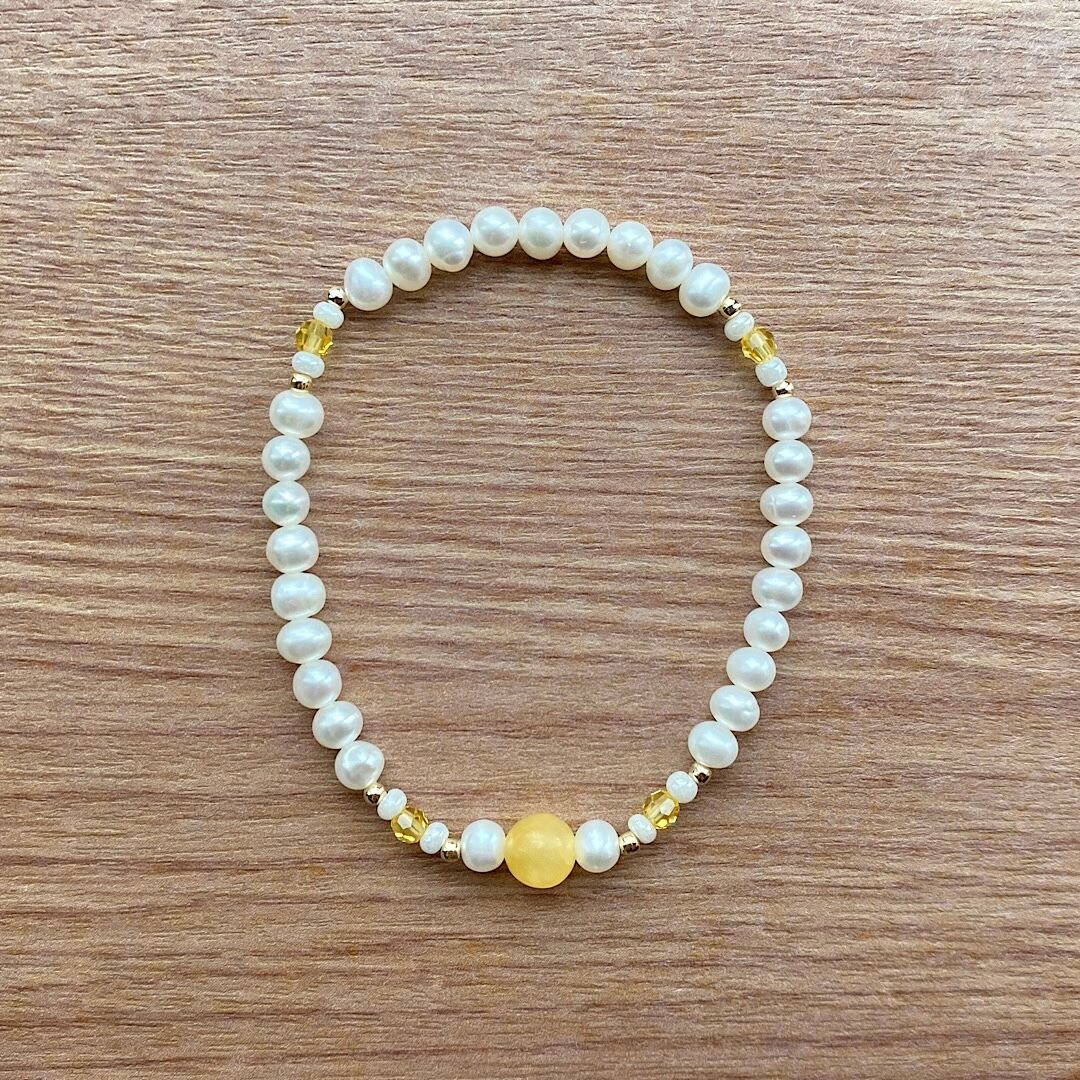 アラゴナイトと淡水パールを合わせたブレスレットです。