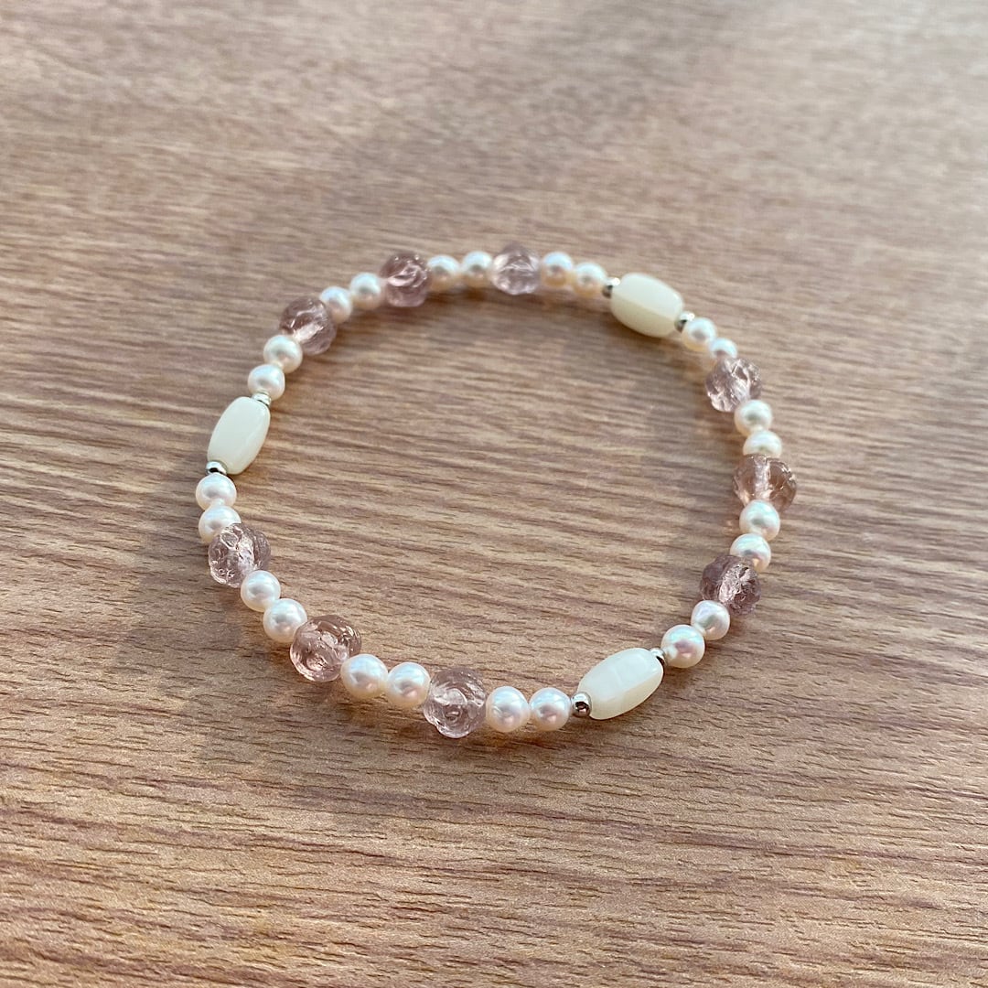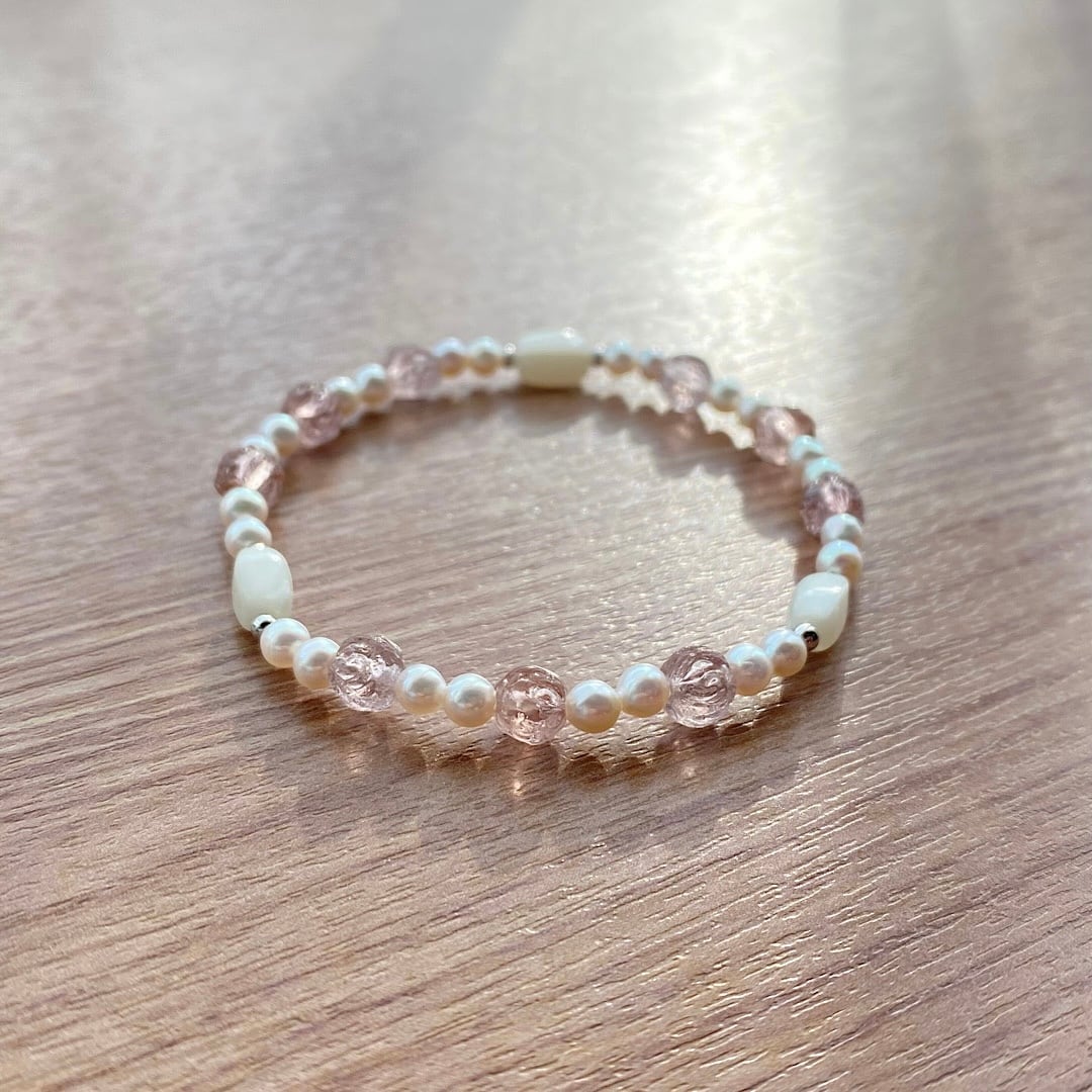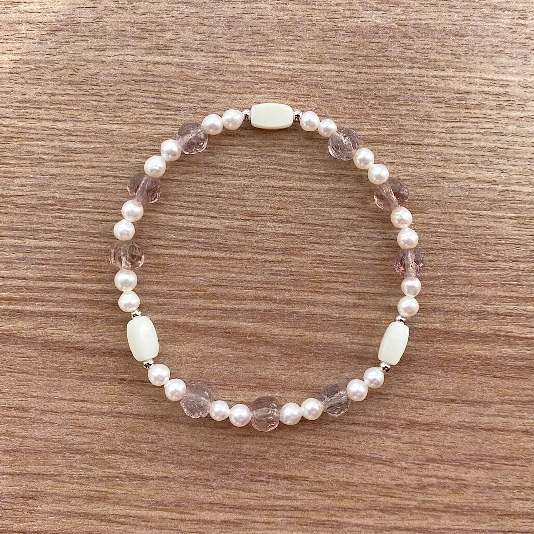 モーヴローズ & パール ホワイト ブレスレット